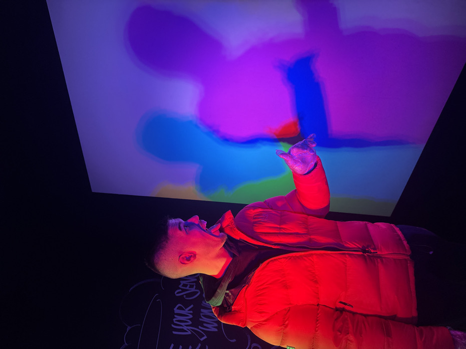- "The image depicts a male individual interacting with an RGB multi-color shadow projection exhibit, likely within the Museum of Senses in Bucharest, Romania" by FM-uEVzD3, licensed under CC BY 4.0