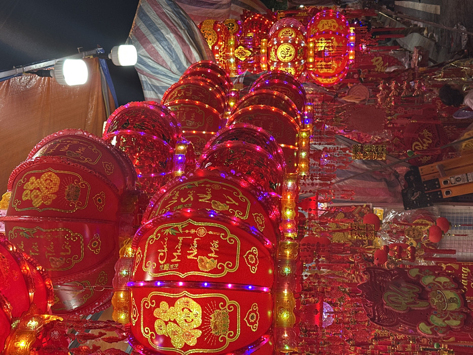 - "The image displays a vibrant nighttime market stall in Nha Trang, Vietnam, dedicated to selling festive decorations, likely for Tet (Vietnamese New Year)" by FM-7mrtA2, licensed under CC BY 4.0