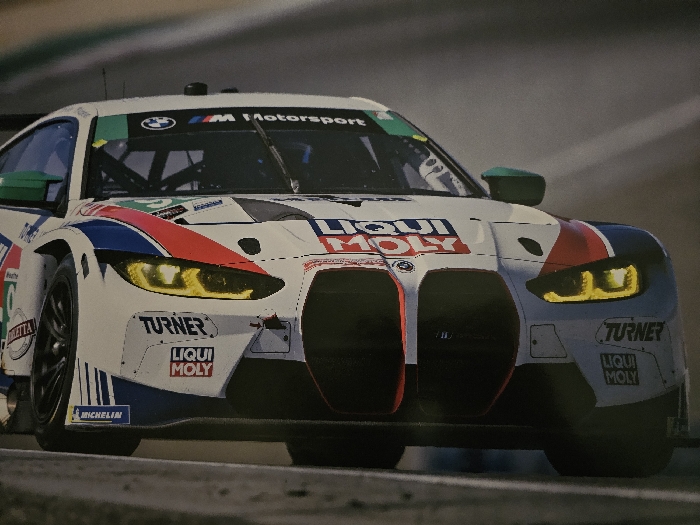 - "A white BMW M4 GT3 racing car is shown in motion on an asphalt race track" by FM-7jnE22, licensed under CC BY 4.0