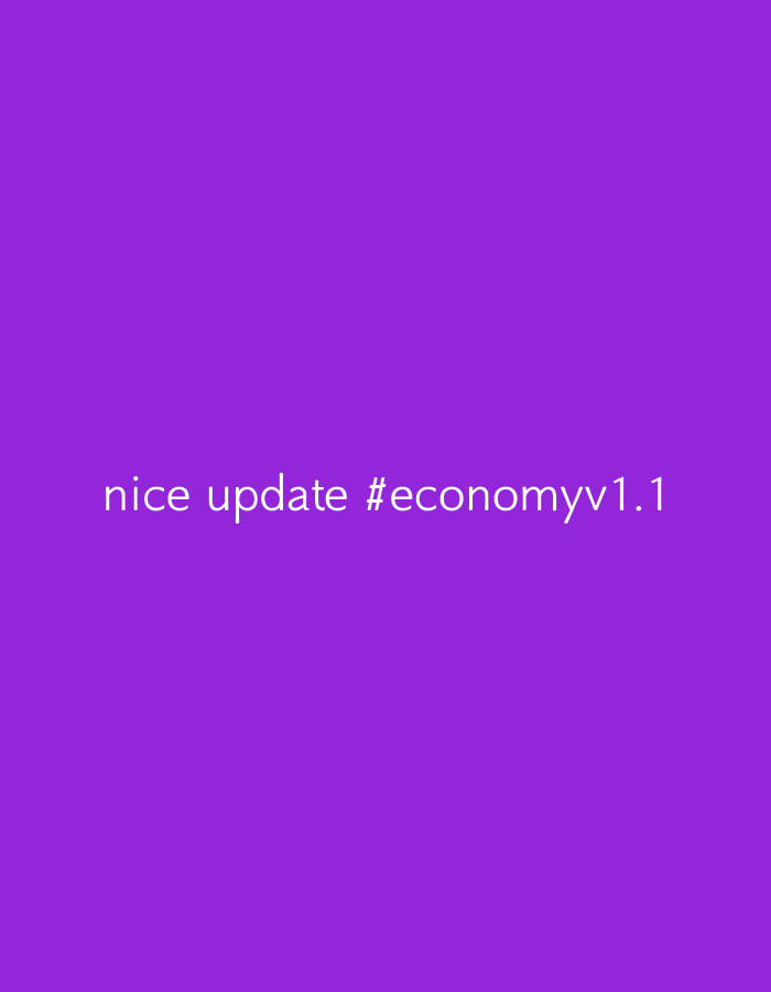This image is a digital graphic featuring white sans-serif text centered against a solid purple background. The text reads: "nice update #economyv1.1". No people, physical objects, actions, or interactions are depicted. The image does not show any physical location or environment from the city of Mahiakalo ward, Kenya, or any other geographical area.