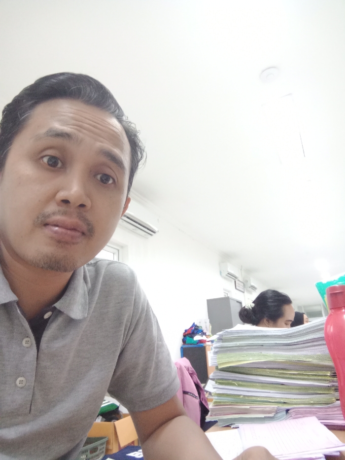 The scene depicts an indoor office environment located in Semarang, Indonesia
