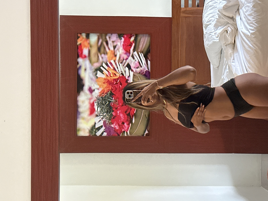 An individual is captured in a mirror selfie, standing in what appears to be a hotel room in Uluwatu, Indonesia