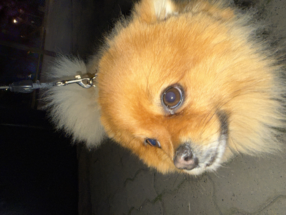 - "A close-up, eye-level forensic image taken at night in Kyustendil, Bulgaria, depicts a small, fluffy dog, likely a Pomeranian, with reddish-orange fur and a lighter, cream-colored tail" by FM-L8M0m1, licensed under CC BY 4.0
