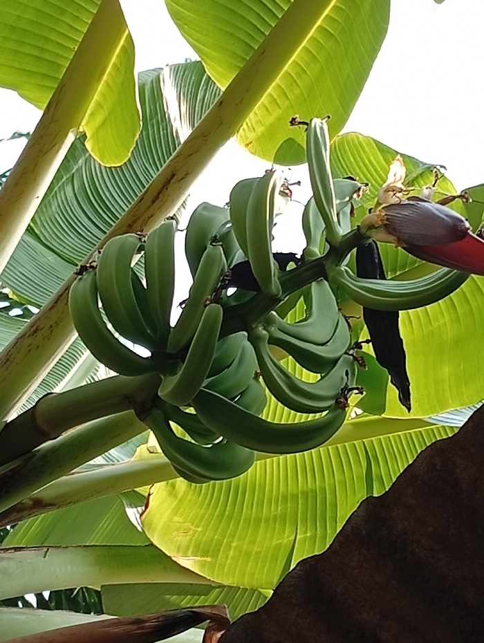 - "This image, captured in Mbak Ikot Abasi, Nigeria, displays a developing cluster of green bananas and a banana blossom on a banana plant" by FM-7gsdz2, licensed under CC BY 4.0