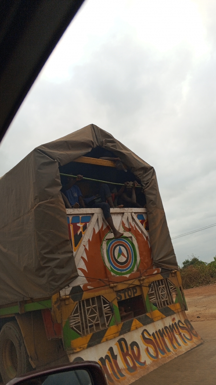 - "The image displays the rear view of a decorated cargo truck on an unpaved road in Lokoja, Nigeria, under an overcast sky" by FM-zx5Cv2, licensed under CC BY 4.0