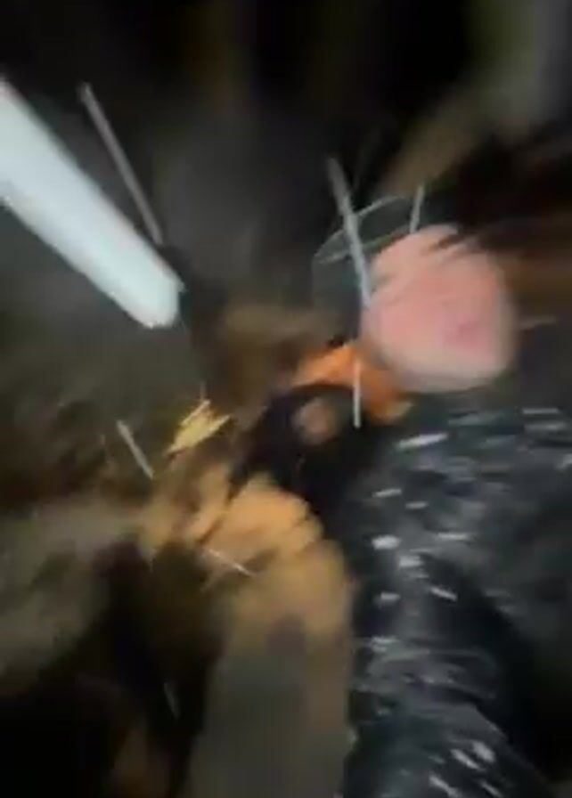 first-person view of someone walking through a snowy, dark environment at night