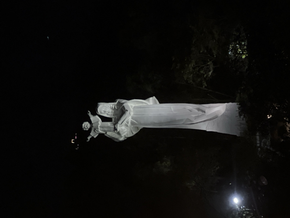 - "A tall, illuminated white statue depicting the Virgin Mary holding the Infant Jesus stands prominently against a dark night sky" by FM-gZMgt2, licensed under CC BY 4.0