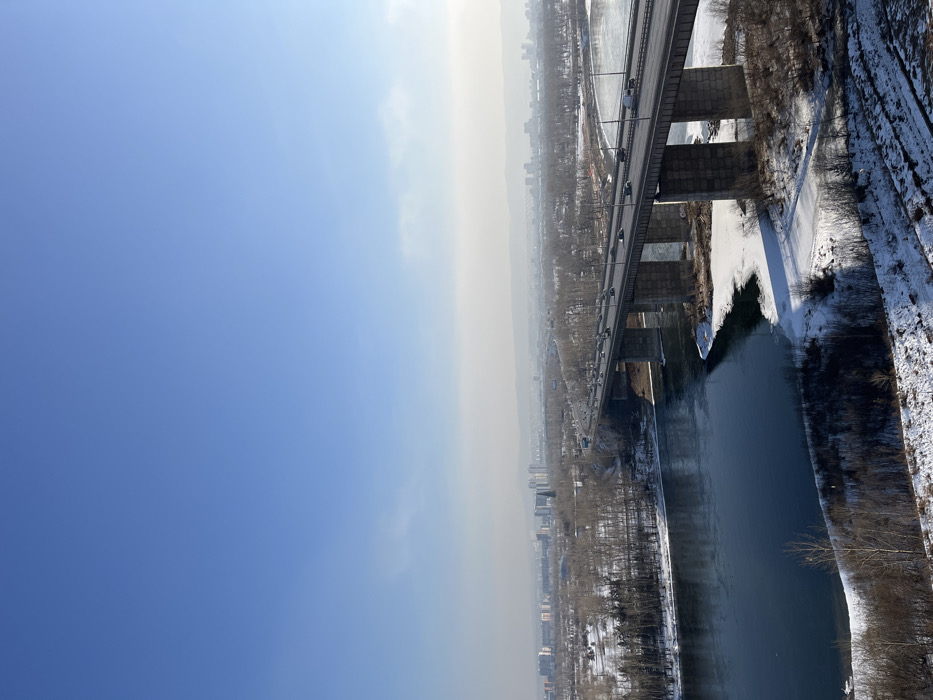 - "An aerial view depicts the Oktyabrsky Bridge spanning the Yenisei River in Krasnoyarsk, Russia, under a clear, pale blue winter sky" by FM-XhYFz1, licensed under CC BY 4.0