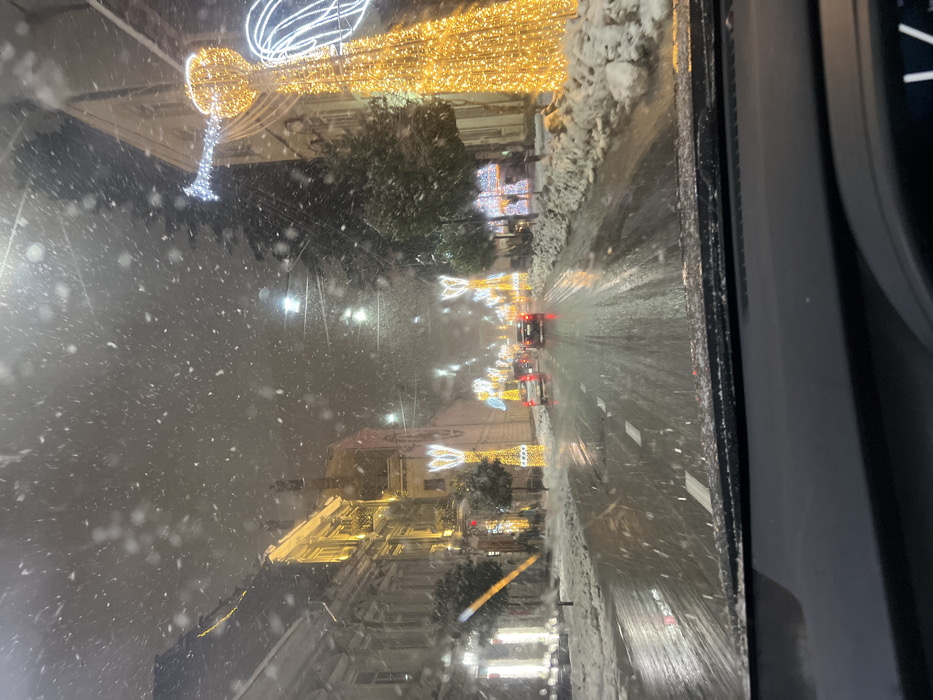 - "The scene depicts a snowy night on an urban street in Kutaisi, Georgia, viewed from inside a vehicle through a windshield flecked with snowflakes" by FM-l44z72, licensed under CC BY 4.0