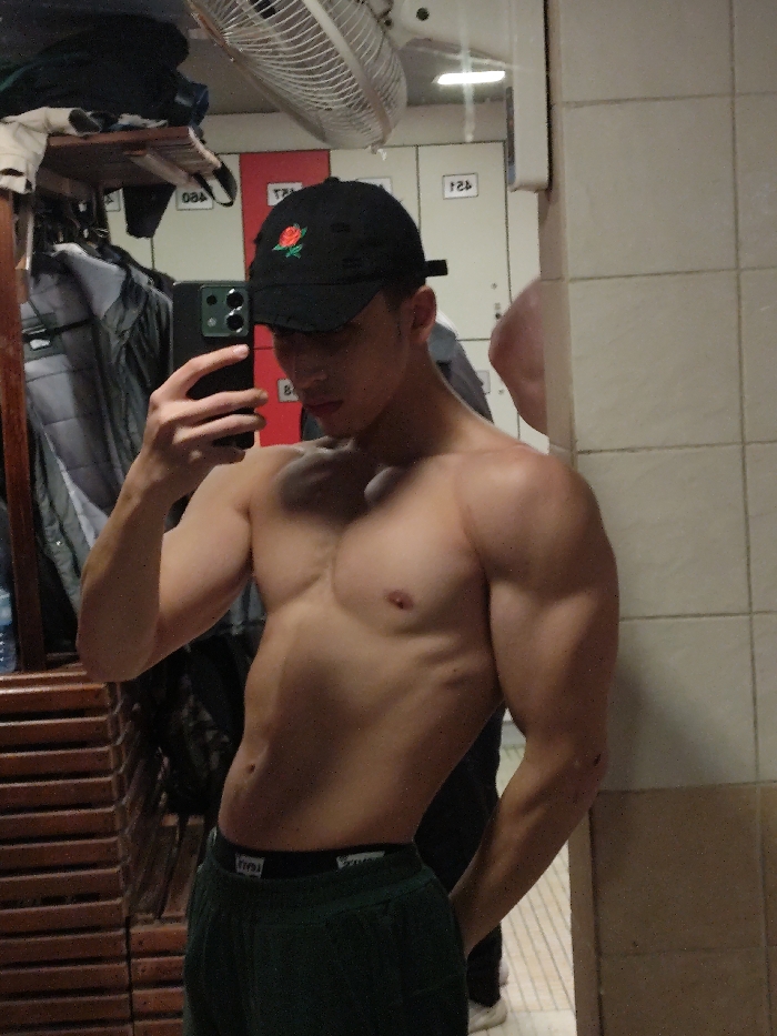 - "A shirtless man in a baseball cap takes a mirror selfie in what appears to be a locker room" by FM-BskwX2, licensed under CC BY 4.0