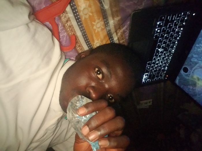 A person lies on a patterned bedspread with a white shirt, holding a small, clear plastic bag to their mouth