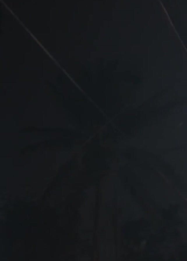 nighttime view of a dark scene. There are visible power lines overhead, and what appears to be the silhouette of a palm tree is partially visible against the dark background. Sounds of traffic are audible in the background.