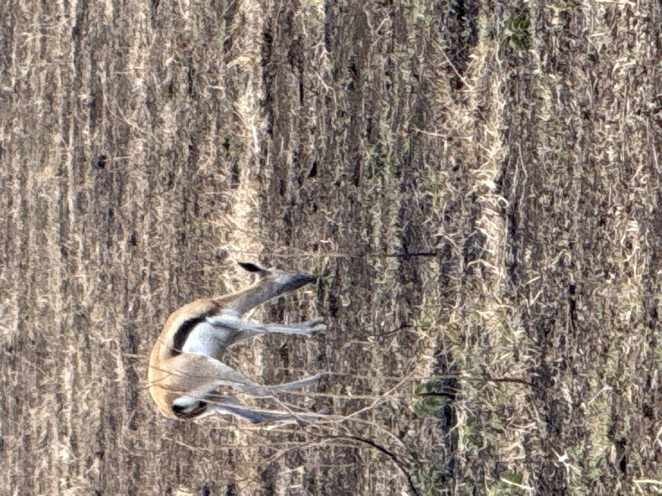 - "A Thomson's gazelle leaps against a background of dry, tan-colored vegetation" by FM-ohOUo2, licensed under CC BY 4.0