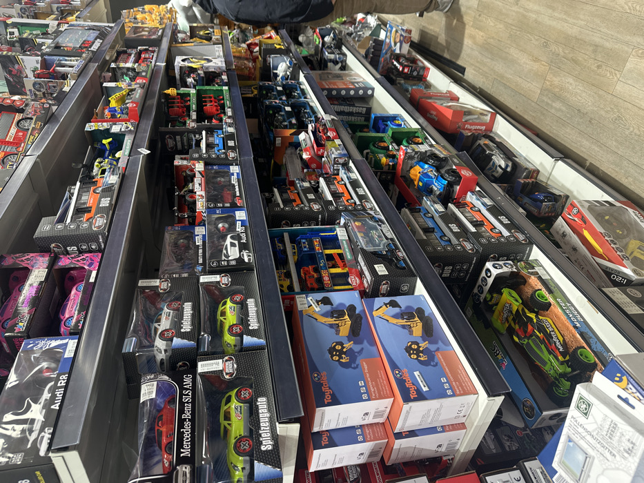 - "The image displays the interior of a retail establishment located in Heilbronn, Germany, specifically a section dedicated to toys, predominantly vehicles" by FM-SSa2t1, licensed under CC BY 4.0