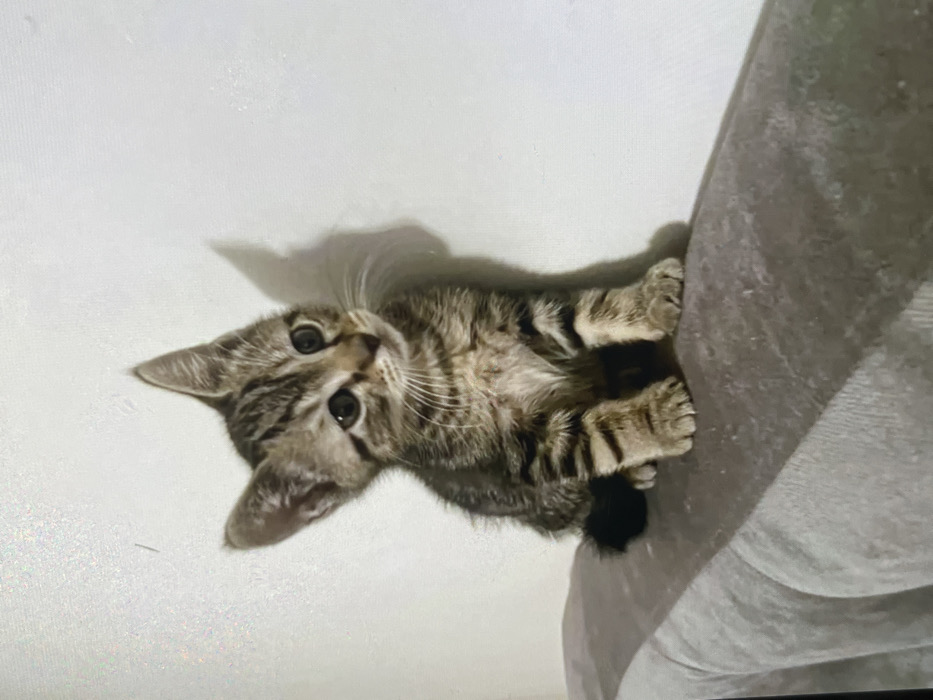 - "The image displays a domestic short-haired tabby kitten with dark brown stripes on a grey-brown fur" by FM-iEctz2, licensed under CC BY 4.0