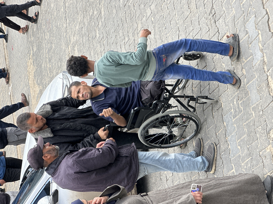 - "An outdoor scene in Unknown, Unknown, shows five individuals gathered around a man in a black manual wheelchair, positioned next to the front passenger side of a white sedan" by FM-zF1RI3, licensed under CC BY 4.0