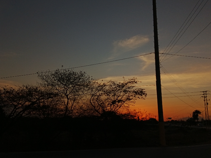 The image displays an outdoor scene captured in El Dátil, Venezuela, during either dusk or dawn