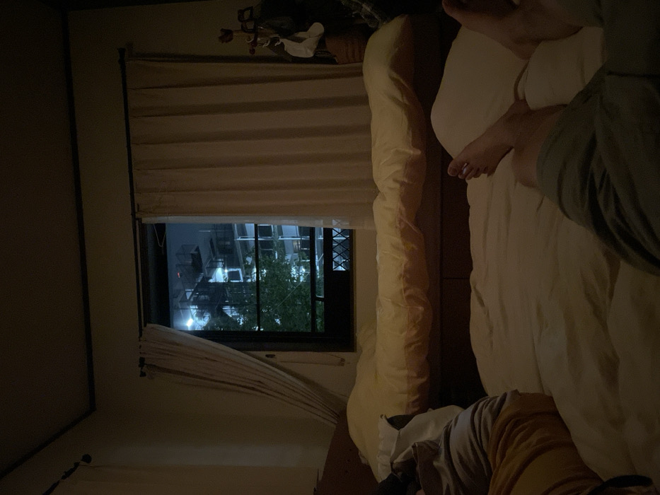 - "A person's legs are visible in the foreground of the image, lying on a bed in a dimly lit room in a residence located in Katsushika City, Japan" by FM-y2PwV2, licensed under CC BY 4.0