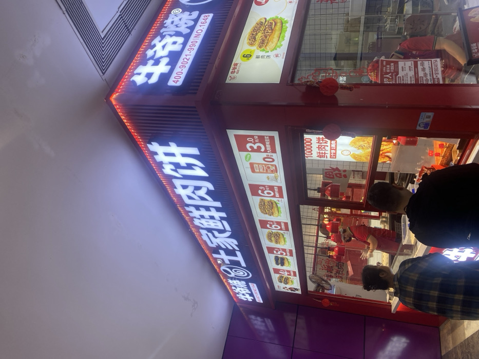 - "The image depicts an interior view of a food stall identified as "牛爷烧 士家鲜肉饼" (Niuye Shao Shijia Fresh Meat Pancake), located within a modern commercial building, likely a shopping mall such as Baiyun Wanda Plaza, in Baiyun District, Guangzhou, China" by FM-ikS7J2, licensed under CC BY 4.0