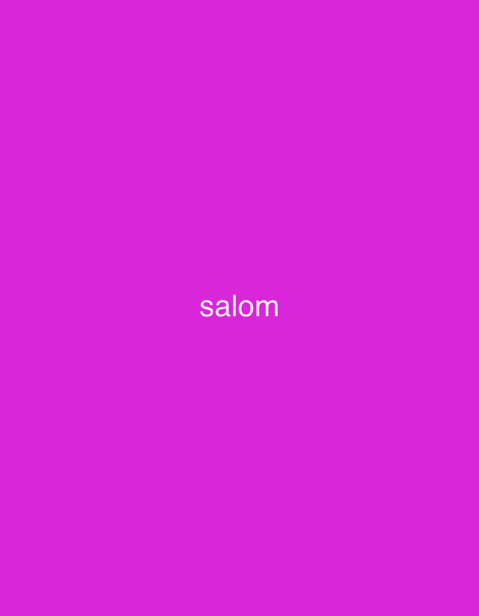 A solid magenta background fills the frame. Centered horizontally and vertically, the word "salom" is displayed in white, sans-serif font. The text is positioned slightly above the exact center point. The image is simple and minimalist, focused solely on the text and color combination.