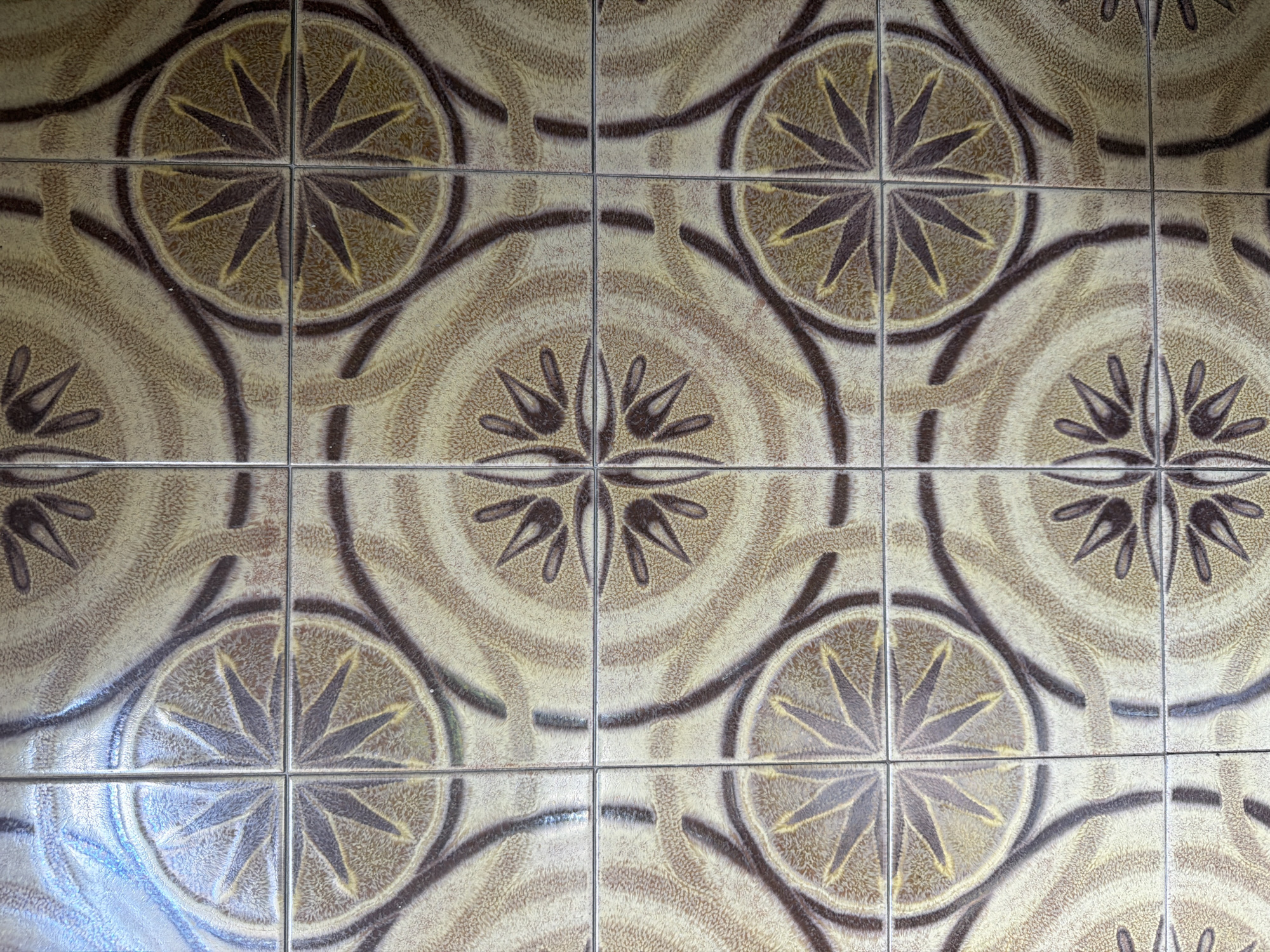 floor covered in square ceramic tiles, arranged in a grid pattern