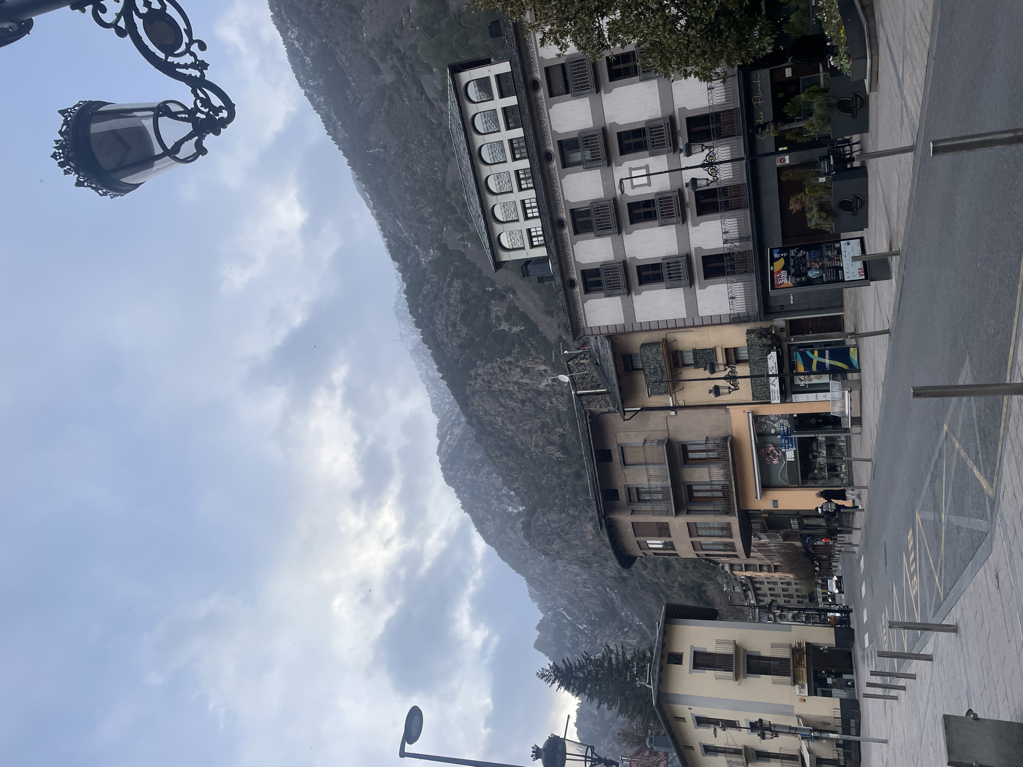 The image depicts a street scene in Andorra la Vella, Andorra