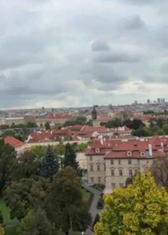 The video showcases a panoramic view of Prague, captured on a cloudy day