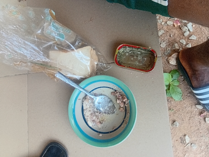 The image captures a ground-level scene in Howayi, Nigeria, displaying items associated with a meal