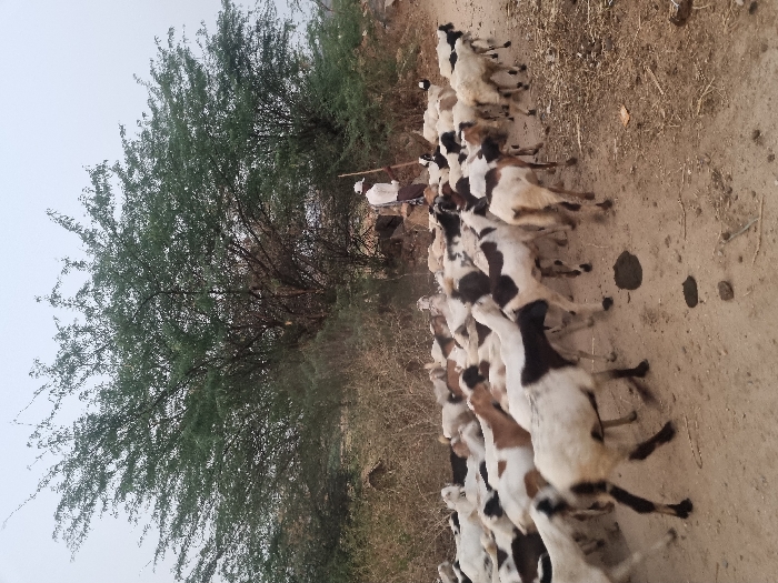 - "The image depicts an outdoor scene in Koyalaguttapalli, India, showing a herd of approximately 30-40 goats moving along a dirt path" by FM-Qmj6l1, licensed under CC BY 4.0