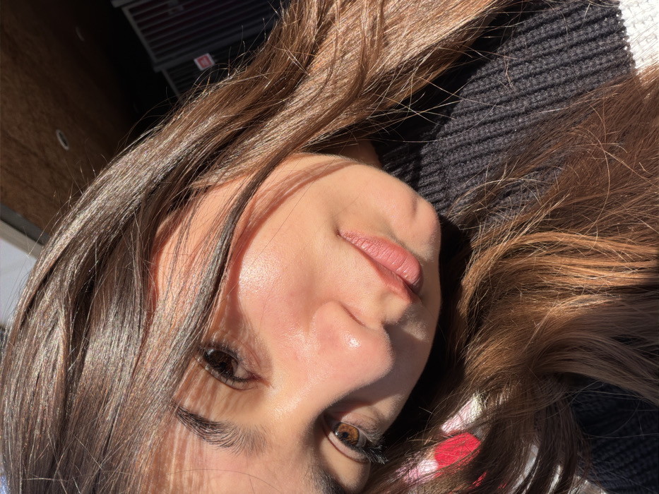 - "A close-up, high-angle self-portrait depicts a young individual, likely female, with long, wavy brown hair, looking towards the camera" by FM-2p7Yo2, licensed under CC BY 4.0