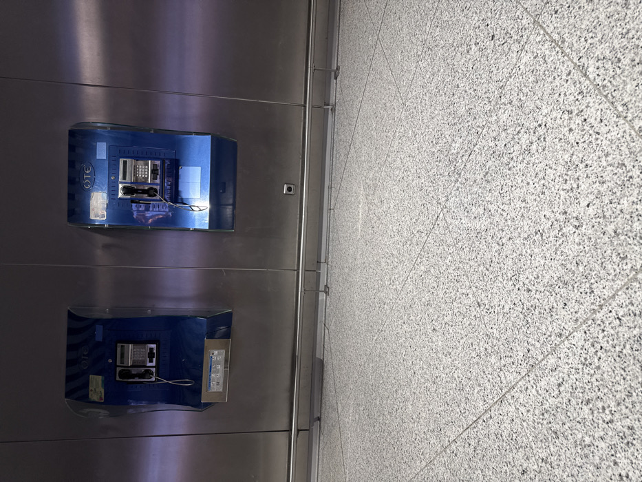 - "Two blue public telephones are mounted on a metallic wall next to a tiled floor" by FM-WgO0P2, licensed under CC BY 4.0
