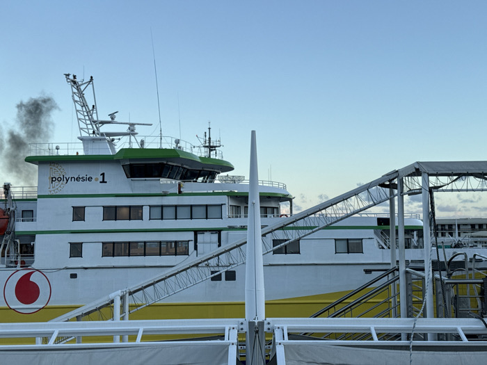 - "The image displays a large passenger and cargo vessel, "Polynésie 1," docked at a pier, specifically in the Port of Papeete, French Polynesia, France" by FM-BCfsB2, licensed under CC BY 4.0