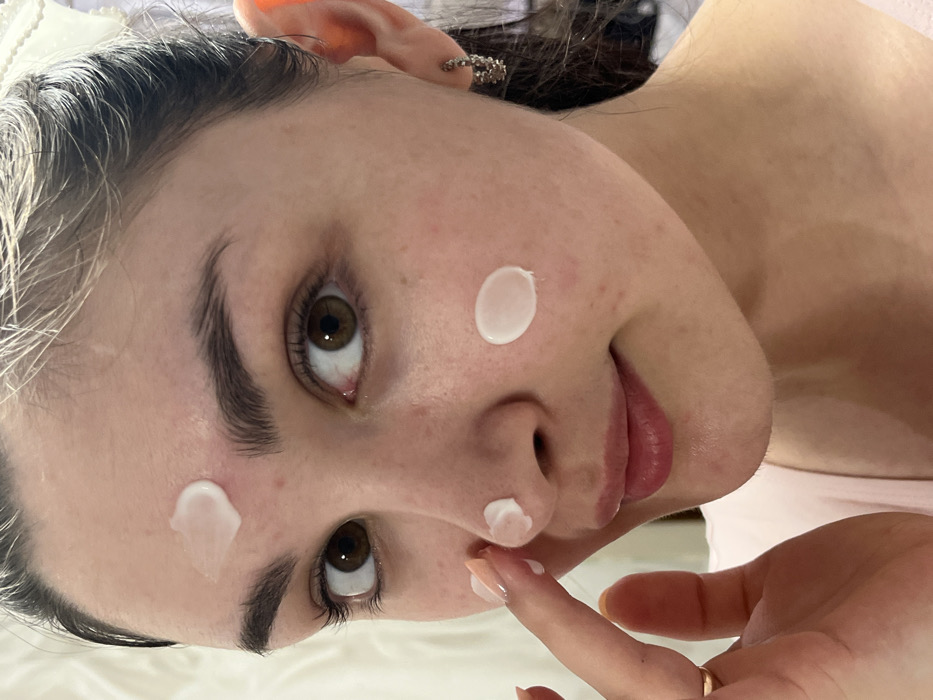 - "A woman lies on her back, applying cream to her face" by FM-jR63L2, licensed under CC BY 4.0