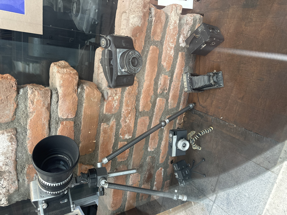 - "A collection of vintage photographic equipment is displayed behind a clear pane, likely a storefront window or museum exhibit, in Vratsa, Bulgaria" by FM-KHcvr2, licensed under CC BY 4.0