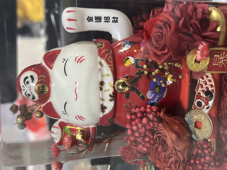 - "A Maneki Neko, or lucky cat, faces left" by FM-h5A5w1, licensed under CC BY 4.0