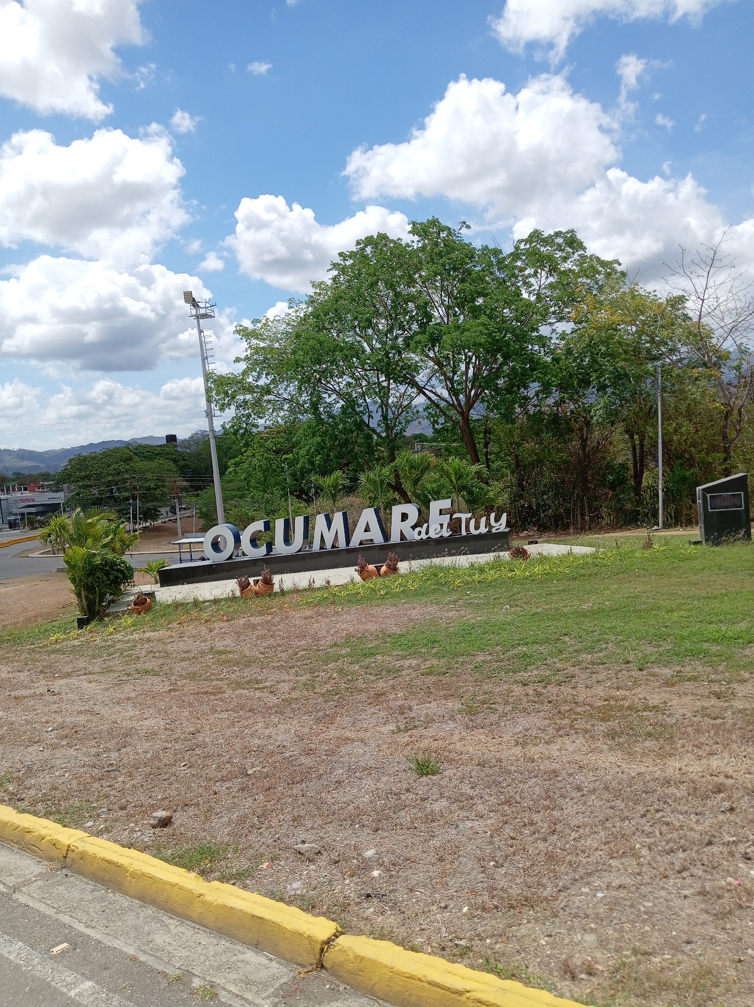 sign reading "OCUMARE del Tuy," likely a welcome sign for the city of Ocumare del Tuy in Parroquia Ocumare, Venezuela