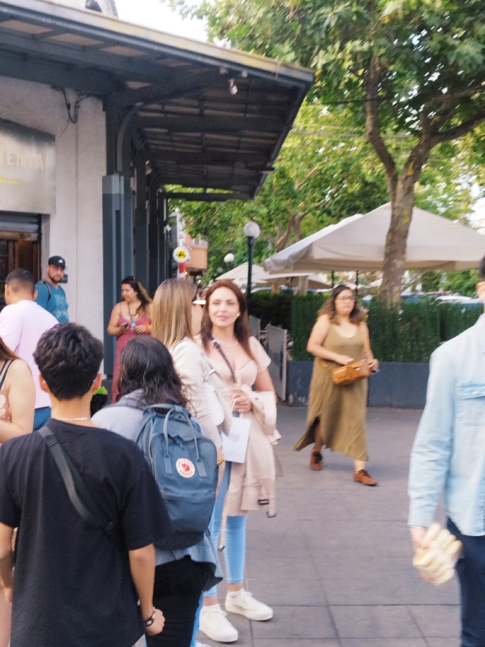 - "A bustling outdoor scene captures a group of people gathered on a sidewalk" by FM-ZqBmD2, licensed under CC BY 4.0