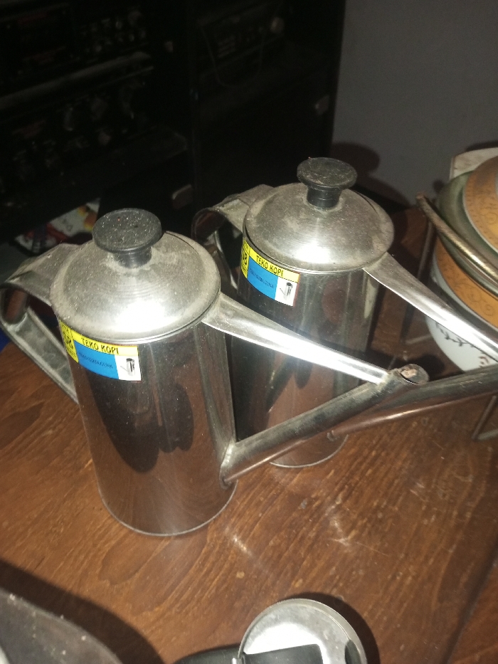 - "Two silver metal coffee pots sit on a wooden surface" by FM-YpPV53, licensed under CC BY 4.0