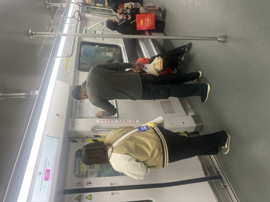 - "The image displays the interior of a subway train car in motion, located within the Yuexiu District, Guangzhou, China, identifiable by the "Dongshankou" (东山口) station highlighted on the digital route display above the door" by FM-ikS7J2, licensed under CC BY 4.0