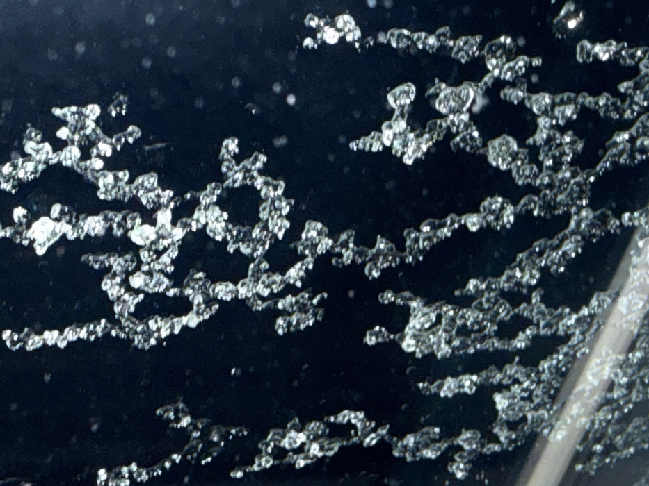 - "The image depicts water droplets forming intricate, connected patterns against a dark, glossy surface" by FM-POwo32, licensed under CC BY 4.0