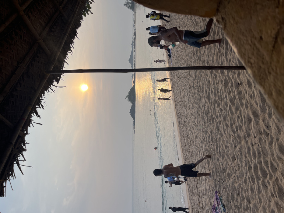 - "This image depicts a beach scene at sunset in Gokarna, India, viewed from underneath a thatched roof structure supported by a vertical wooden pole on the right" by FM-nyiZs1, licensed under CC BY 4.0