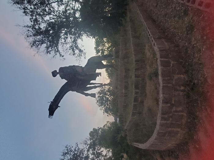 - "A statue of a man riding a horse is silhouetted against a pale sky near sunset, framed by trees" by FM-tzqH12, licensed under CC BY 4.0
