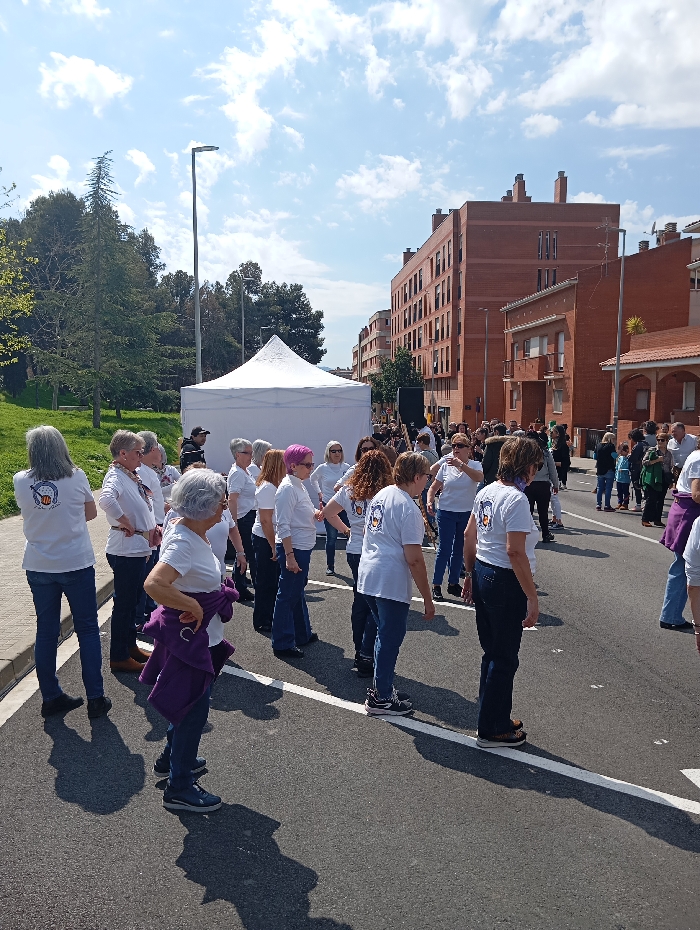 The image depicts a public gathering on a paved street in Ripollet, Spain