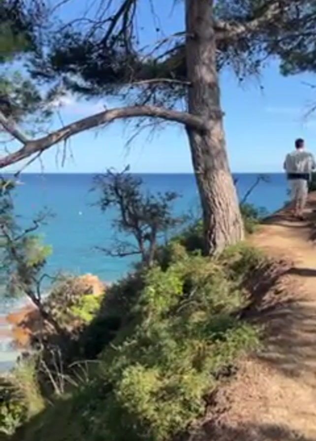 The video opens with a man walking down a dirt path that parallels the ocean's edge