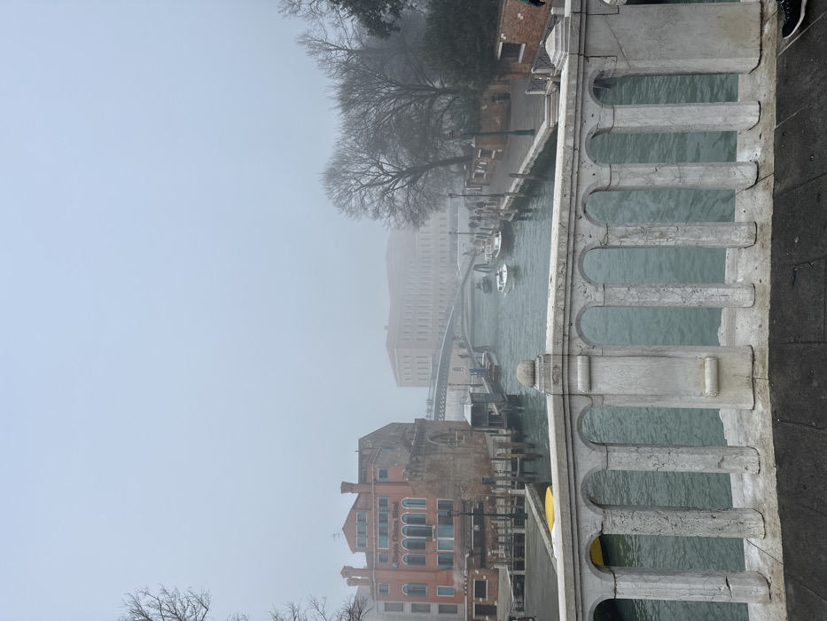 - "The image captures a foggy winter scene in Venice, Italy, viewed from the Ponte degli Scalzi bridge looking southwest along the Grand Canal towards Piazzale Roma" by FM-n6yWE2, licensed under CC BY 4.0