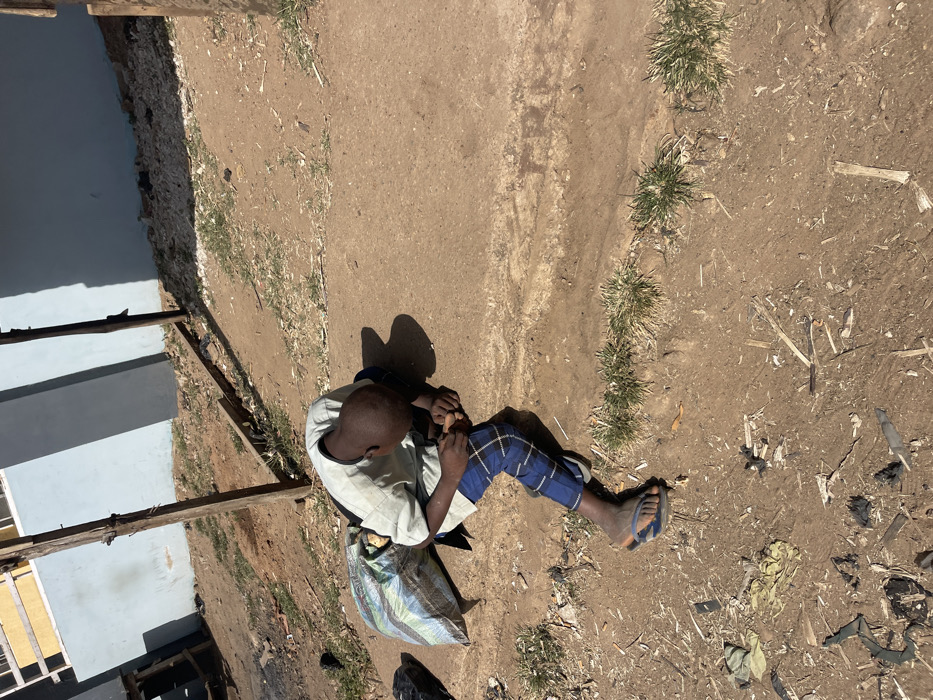 - "An individual, identified as a young male, is observed crouching on light brown dirt ground in an outdoor environment in Chikaji, Nigeria" by FM-BxNEa2, licensed under CC BY 4.0