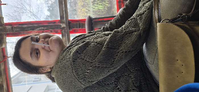 The image captures an individual, identifiable as female, seated indoors in the city of Unknown, Unknown