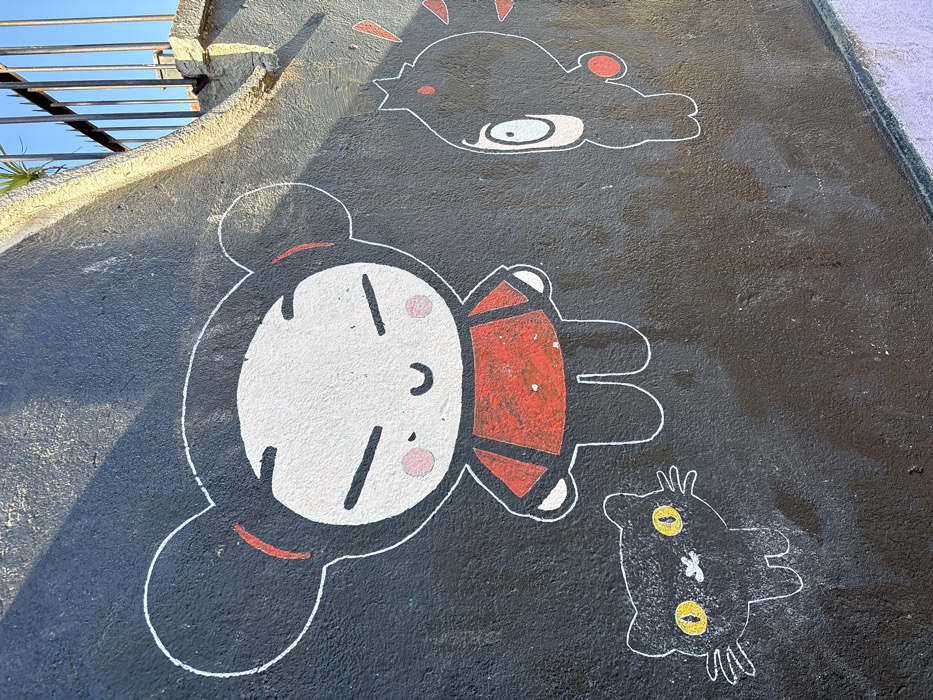 - "This image captures a portion of a dark grey, textured outdoor wall in Tomé, Chile, featuring a mural with three cartoon characters" by FM-CB7hJ2, licensed under CC BY 4.0