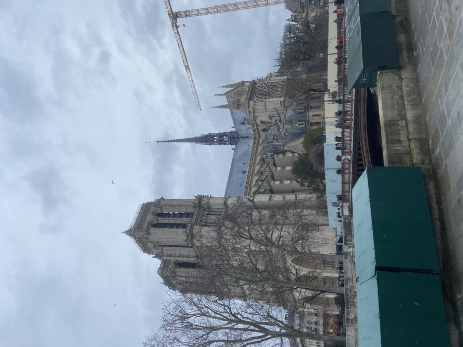 - "The image displays a wide view of Notre Dame Cathedral in Paris, France, from the opposite bank of the Seine River under an overcast sky" by FM-UY0jD2, licensed under CC BY 4.0