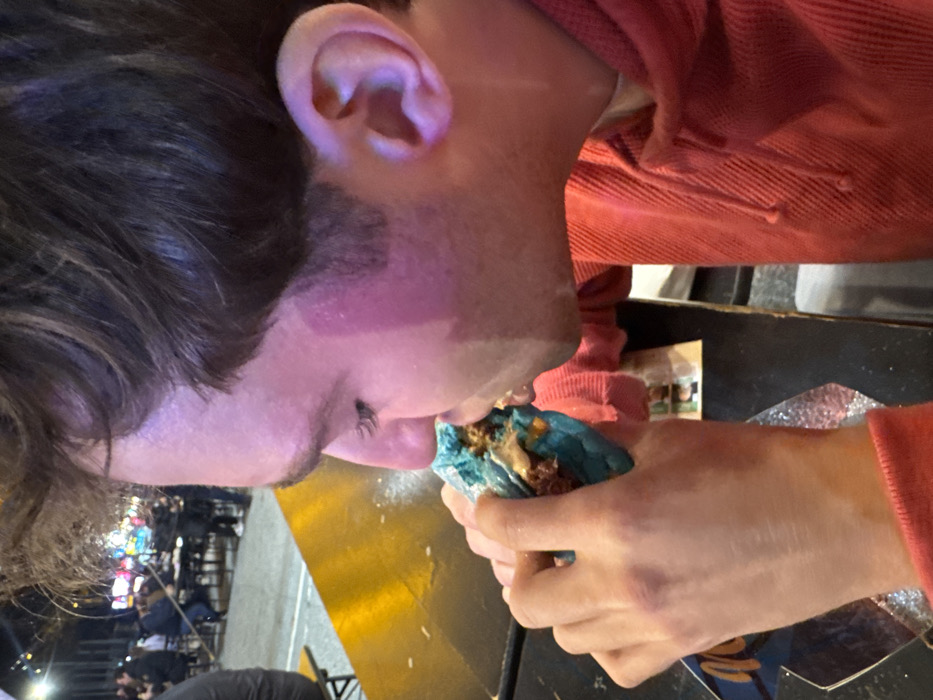 - "A person in a red sweatshirt eats a blue taco" by FM-6wyrF3, licensed under CC BY 4.0